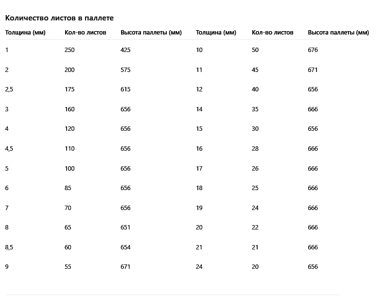 | Толщина | 1, 2, 2.5, 4.5, 7, 8, 10, 14, 18, Другая (до 30) |